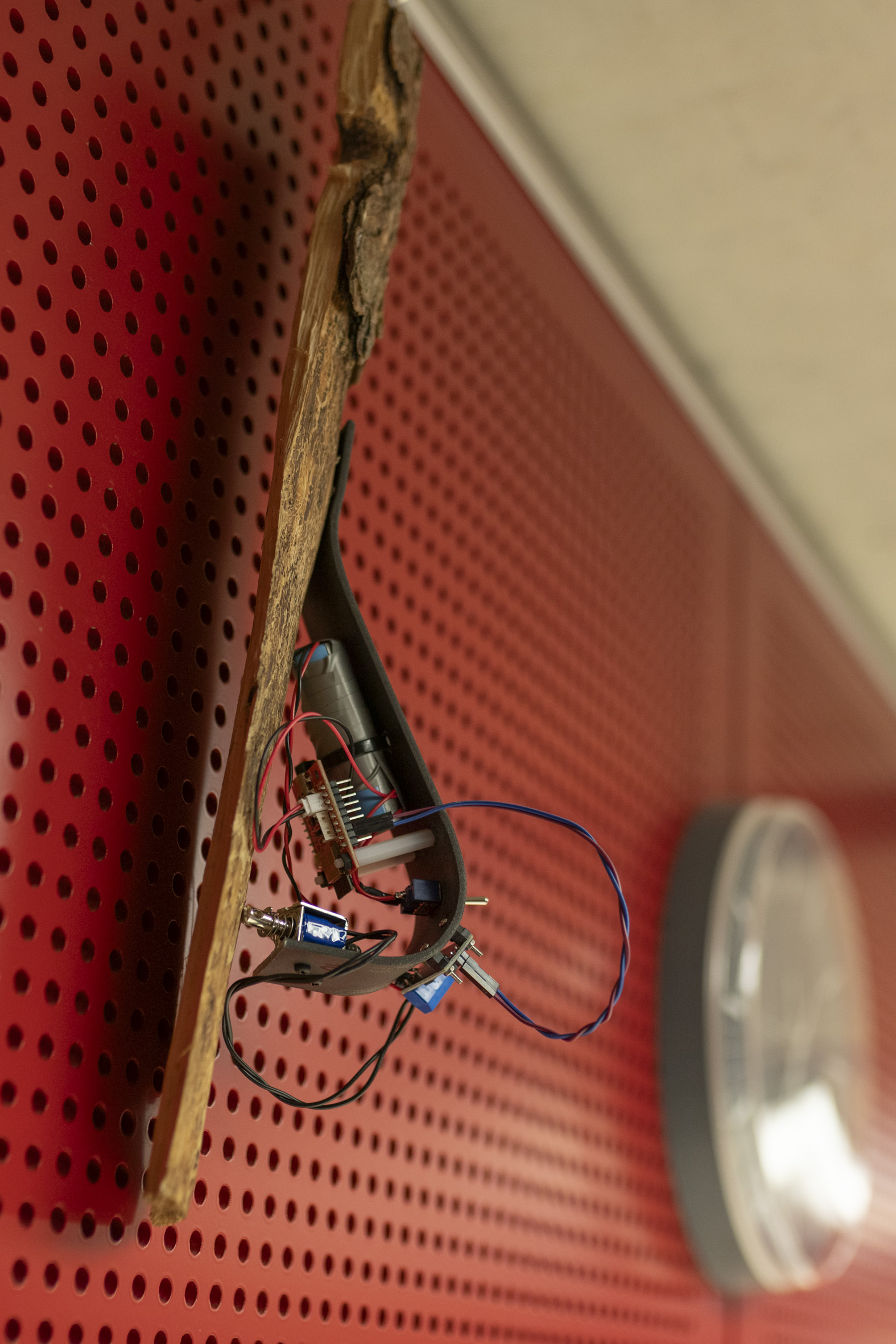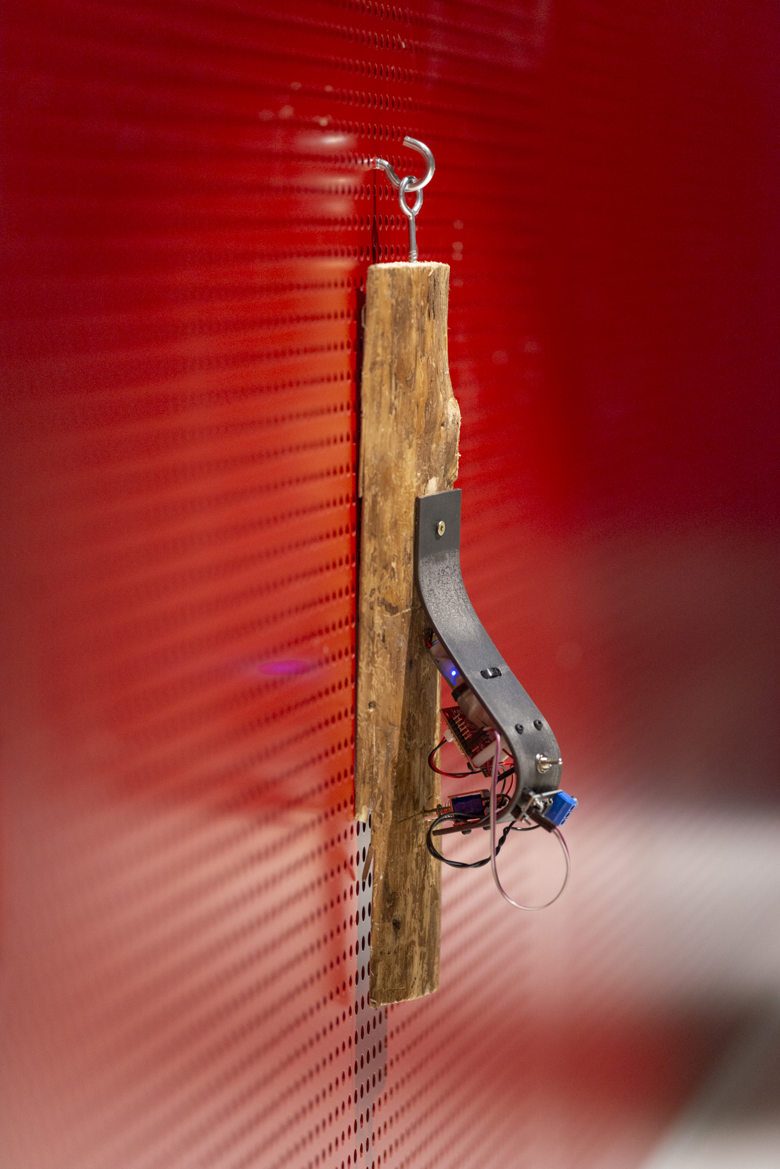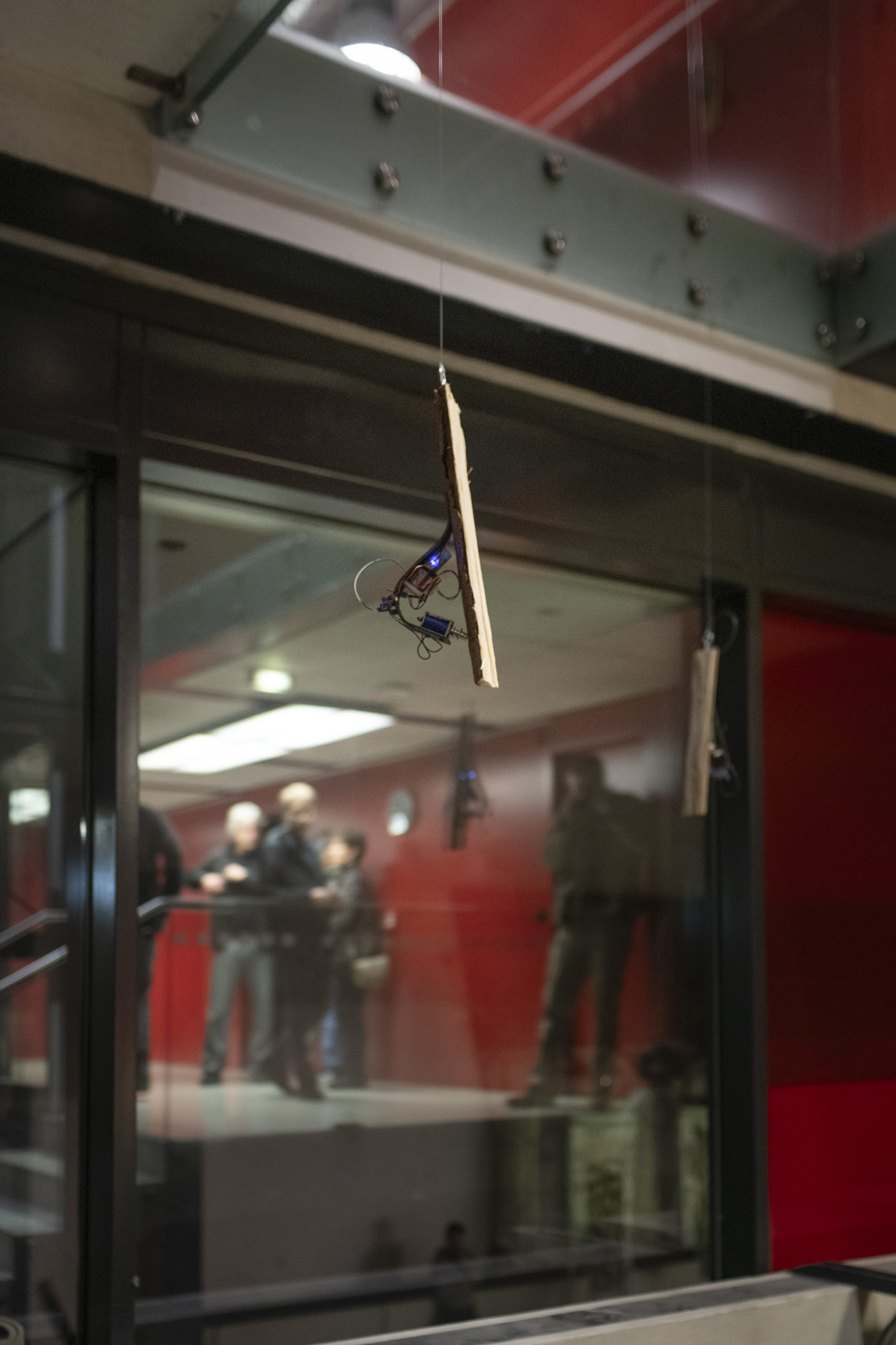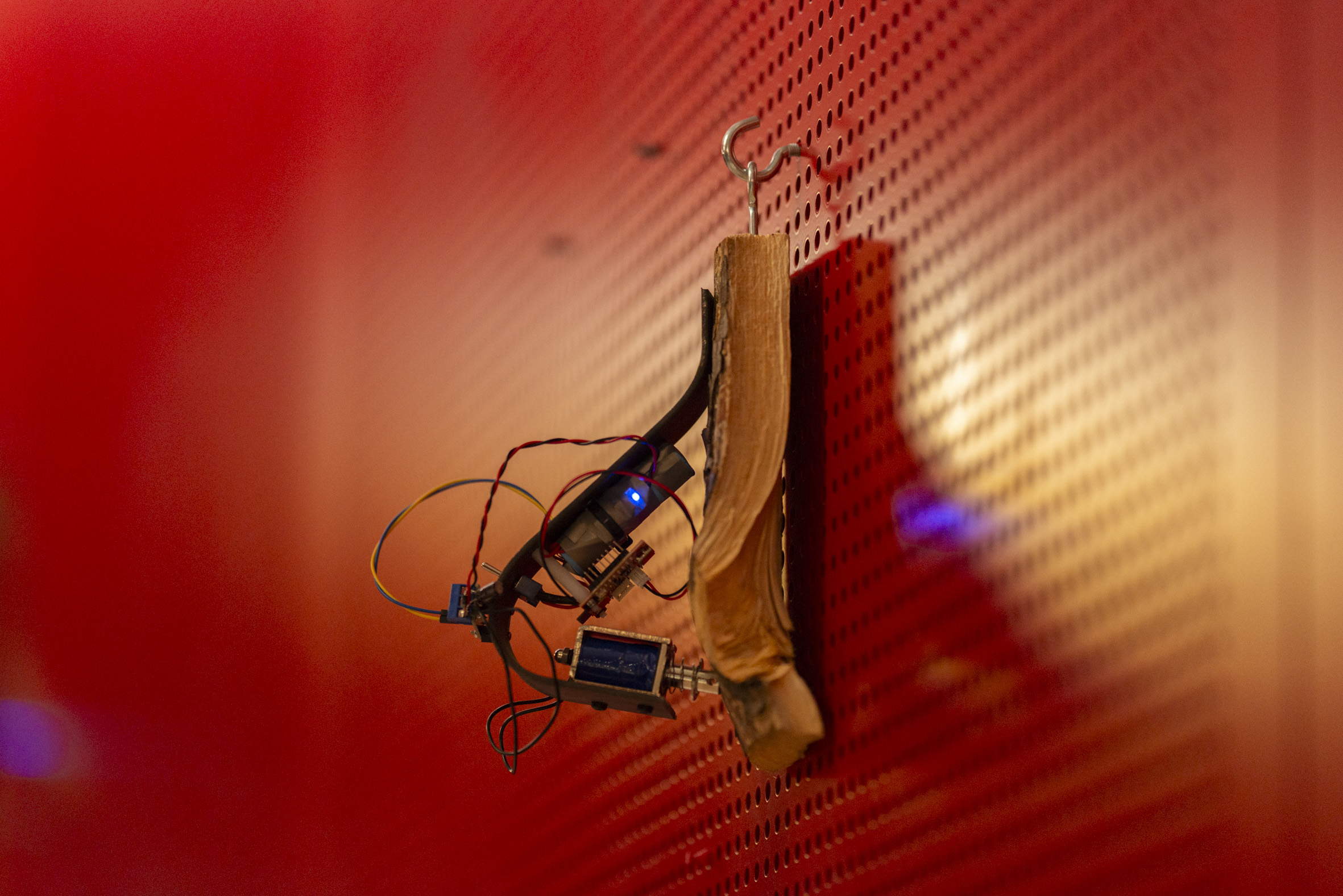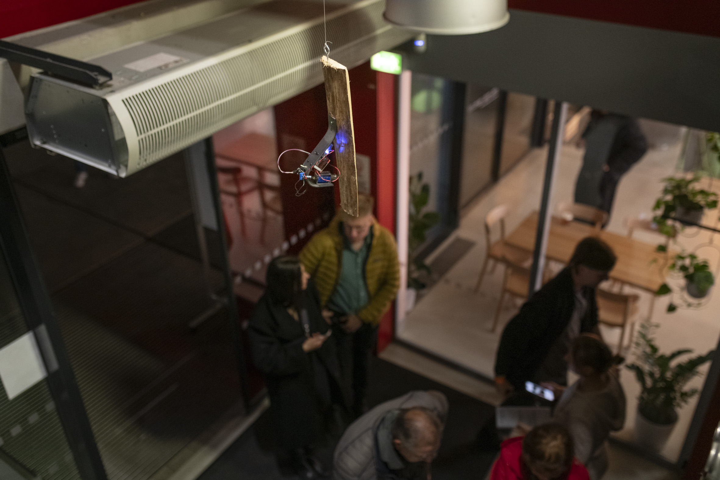 The installation came about during the collaborative project TRYCHTÝŘ IV with the common theme of “new wilderness”, which resulted in various artistic interventions in the space of Theatre on Orlí Street (Brno, CZ) where SONDA 2025 — festival of experimental music and sonic arts — took place. 12 cyber-woodpeckers were placed throughout the foyer of the theatre, rewilding the sonic environment of the space.